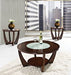 A bold expression of contemporary style, these Rafael occasional tables really set the mood for a modern interpretation fo style. Soft flowing shapes define the collection with round tops highlighted with crackled glass tops that are a real show-stopper. The merlot cherry finish gives the group a sleek yet warm feel and cocktail casters add functionality to the collection's style.