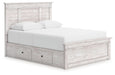 Makidern - Queen Panel Storage Bed With Storage Footboard - Whitewash