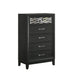 The Obsidian 5-Drawer Chest in Black is a sophisticated piece that combines modern elegance with practical functionality. Expertly crafted from premium solid Rubberwood and enhanced with manufactured woods and veneers, this chest offers both lasting beauty and the durability of genuine wood. Its sleek design is highlighted by clean lines and a low-sheen black finish that exudes refined sophistication. Geometric cut-outs backed with mirror-like Mylar add a luxurious touch of modern glamour. The chest features five smooth-gliding drawers equipped with durable Kenlin Glides and stylish acrylic drawer pulls, all meticulously crafted with dovetail joinery and finished interiors for a snag-free, elegant storage solution.