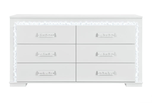Global Furniture USAThe Naomi Dresser blends beauty and practicality with its sleek light grey lacquer finish and LED light trim accenting the frame. Featuring multipl...