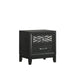 The Obsidian 2-Drawer Nightstand in Black is a striking blend of modern elegance and practical design, perfect for complementing any bedroom decor. Crafted with meticulous attention to detail, this nightstand is made from premium solid Rubberwood, enhanced with manufactured woods and veneers, ensuring both lasting beauty and the durability of genuine wood. Its sleek design is highlighted by clean lines and a chic, low-sheen black finish that exudes bold sophistication. The geometric cut-outs, backed with mirror-like Mylar, introduce a touch of luxury and modern glamour, making this piece both functional and visually appealing. The nightstand features two smooth-gliding drawers, equipped with durable Kenlin Glides and stylish acrylic drawer pulls. Each drawer is expertly crafted with quality dovetail joinery and finished interiors, providing a snag-free, elegant storage solution for your bedside essentials. This nightstand is the perfect combination of fashion and function, adding a touch of refined style to your bedroom.