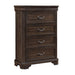 Introducing the Lyndhurst Chest — a harmonious blend of style and functionality for your bedroom. Crafted from solid Acacia, Acacia veneers, and manufactured wood, this chest ensures lasting strength and durability to withstand everyday use. Its heirloom finish, achieved through a meticulous multi-step process, adds depth and character to the wood with mild distressing, burnishing, and glazing. The masterful style of this piece is highlighted by its substantial moldings, bracket feet, and ornate hardware, making it a standout statement piece in any room. Inside, the chest features five spacious drawers crafted with English dovetail joinery, full extension drawer glides, and finished interiors, providing ample storage for clothing and accessories. A discreet velvet-lined drawer is concealed behind the top molding, offering a touch of luxury for delicate items, while the bottom drawer is cedar-lined, ensuring optimal storage for sweaters. Elevate your bedroom decor with the stately sophistication of the Lyndhurst Chest