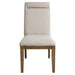 Sophisticated and elegant but with a casual accent, the Garland Side Chair is built to shine in any environment. The fully upholstered Parsons Chair comes in a tightly tailored canvas cover with a brass accent that mixes casual and formal styles in a relaxed but elegant design .The lightly distressed solid wood legs have a lustrous toffee finish that will warm up any room.