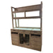 Designed with both style and functionality in mind, this buffet and display hutch is sure to impress your guests and elevate your dining experience. Featuring a fashionable Quartz top insert, this piece makes and ideal surface for food and beverage preparation and serving. The beautiful oak and ash solids and straight-grain oak veneers are accentuated by a cool taupe Moonstone finish, adding a touch of sophistication to any space. with and integrated Dual AC Power Center, keeping electric appliances close at hand has never been easier. Three top storage drawers are felt-lined, perfect for storing silver and serving pieces, while two wood doors open to reveal generous storage areas for all your dining essentials. Built-in storage racks elegantly display wine bottles, adding a touch of luxury to your dining room. Glass doors open to reveal generous storage areas with adjustable shelves inside, while the open design features sliding glass doors accented with LED lighting inside, providing a stunning display for your most prized possessions. Custom burnished nickel hardware adds sophistication, while the hanging stemware rack displays glasses to full effect. And with and open top display shelf perfect for beverage bottles and accessories, this piece has everything you need to entertain in style.