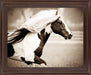 Experience the dynamic beauty of a horse in full stride with this captivating framed photograph. The flowing mane and striking black-and-white coat are rendered in a warm sepia tone, evoking a timeless sense of grace and freedom. Set within a rich cinnamon mocha frame, this piece effortlessly blends rustic charm with contemporary elegance, making it a perfect centerpiece for living rooms, offices, or dens. Expertly crafted with real glass and ready to hang, it celebrates the raw power and serene spirit of animals in motion, inviting you to bring a touch of nature's vitality into your space.