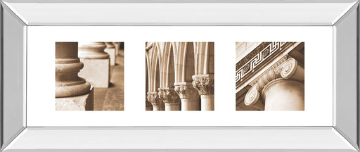 Architectural Triptych I By Tony Koukos - Mirror Framed Print Wall Art - Beige