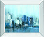 Step into a tranquil urban escape with this captivating artwork that beautifully portrays a city skyline bathed in calming shades of blue and aqua. The textured brushstrokes create an abstract yet inviting cityscape, enhanced by the sleek mirrored frame that adds a modern touch and depth to the piece. Perfect for living rooms or offices, this framed wall art combines artistic sophistication with a soothing palette, making it a striking focal point that invites reflection and serenity into any space.