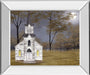 Evening Prayer invites you into a tranquil moment where a quaint church stands quietly under the soft glow of twilight. The muted colors of gray, brown, and yellow blend seamlessly with the delicate moonlight filtering through the trees, evoking a serene and reflective atmosphere. Encased in a sleek mirrored frame crafted from premium real glass, this piece not only protects but enhances the subtle details and vibrant hues, making it a perfect addition to any living room or office seeking a peaceful, elegant touch. Expertly made in the USA, it combines timeless charm with modern sophistication, ready to bring calm and beauty to your space.