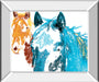 Experience the captivating energy of equine beauty with this vibrant framed wall art featuring two horses painted in bold strokes of blue and warm amber. The dynamic composition highlights the soulful gaze and spirited presence of these majestic animals, bringing a sense of life and movement to your space. Encased in a sleek 2.5-inch mirrored frame, the piece adds a modern touch that reflects light and enhances the room's ambiance. Crafted with premium real glass and assembled in the USA, this graphic art print is ready to hang and perfect for adding a nature-inspired, calming influence to your living room, bedroom, or farmhouse décor.