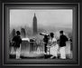 Step back in time with this evocative black-and-white photograph capturing a misty view of Manhattan from Radio City Music Hall. The iconic Empire State Building rises through the haze as three elegantly dressed figures engage with a classic coin-operated telescope, inviting you to share their moment of urban wonder. Framed in a deep midnight aura finish with premium real glass, this piece blends nostalgia and sophistication, making it an ideal statement for living rooms, offices, or studies craving a touch of timeless city elegance.