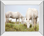 Step into a tranquil moment with this captivating framed wall art featuring two white horses peacefully grazing in a lush green field. The mirrored frame adds a sleek, modern touch that enhances the depth and brightness of the scene, while the premium real glass ensures every detail is captured with stunning clarity. This piece brings a soothing natural presence to any living room or office, inviting calm and serenity into your space. Expertly crafted and ready to hang, it blends contemporary elegance with the timeless beauty of nature.