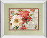 Immerse yourself in the timeless beauty of "Blossom Elegance," a captivating floral composition that effortlessly blends classic charm with modern sophistication. This piece features a lush bouquet of red and pink blossoms alongside a soft cream flower, set against a subtle vintage script backdrop that hints at Parisian romance. Encased in a sleek mirrored frame with double matting in green, brown, and cream tones, the artwork gains depth and dimension, while real glass protects its vibrant colors and intricate details. Perfect for living rooms, bedrooms, or offices, this framed wall art invites a touch of elegance and nature's grace into your home, transforming any space into a serene and stylish retreat.