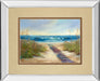 Step into a serene coastal escape with this beautifully framed artwork that captures a tranquil beach pathway leading to gentle ocean waves. The soft blues and sandy neutrals evoke a calming atmosphere, perfect for bringing a peaceful touch to any living room, bedroom, or office. Enhanced by a sleek mirrored frame and double matting in warm beige and brown tones, this piece offers a polished gallery-style finish that highlights the vibrant colors and delicate details. Protected by premium real glass, the artwork is ready to hang and invites you to pause and enjoy the soothing beauty of nature's coastal charm.