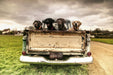 "Old Glory" captures a nostalgic moment with four dogs sitting in the bed of a vintage truck, set against a rustic countryside backdrop. Printed on tempered glass, this piece blends durability with striking visual depth, enhanced by hand-embellished details beneath the glass surface. The artwork’s warm, earthy tones and timeless subject evoke a sense of comfort and Americana charm, making it a perfect addition to living rooms, offices, or dens. Ready to hang with sawtooth hangers, it offers both style and ease for your wall décor while supporting a social cause with every purchase.