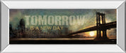 Capture the promise of a fresh beginning with "New Day Bridge," a stunning framed wall art piece that harmonizes vintage allure with contemporary sophistication. This graphic artwork showcases an atmospheric cityscape at sunset, featuring a bold bridge silhouette paired with inspiring typography that reads "Tomorrow is a New Day." Encased in a sleek 2.5-inch mirrored frame, it adds a luxurious reflective depth to any living room, office, or hallway. Crafted with premium real glass, the piece enhances color richness and intricate details, making it a timeless addition that celebrates hope, renewal, and elegant style.