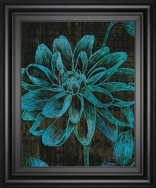 Classy LivingImmerse your space in the captivating allure of this floral graphic art, where vibrant turquoise petals emerge boldly against a textured black back...