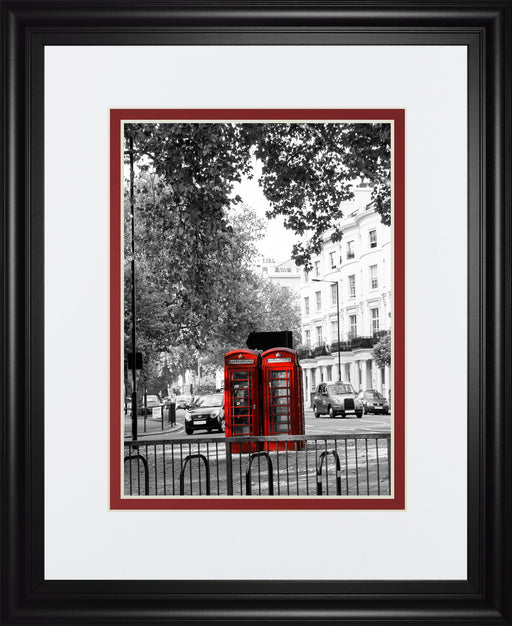 Classy LivingStep into a timeless urban scene with this striking framed wall art featuring iconic red telephone booths set against a classic black-and-white cit...