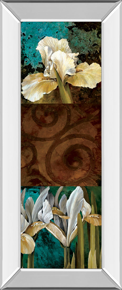 Classy LivingStep into a tranquil garden scene where delicate white irises unfurl gracefully against a rich tapestry of teal and earthy browns. This mixed media...