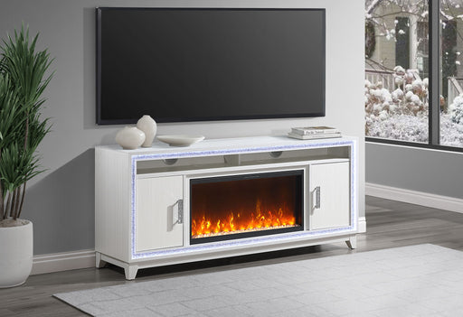 Aveena - 76" Entertainment Unit With TV, LED, Speakers, Crystal Inserts And Pop Up Center Doors - White