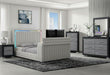 Experience the ultimate in modern comfort and innovation with the Elias Grey Bed with TV Lift and Fireplace Footboard by Global Furniture USA. Finished in a sophisticated light grey fabric with horizontal channeling, this bed delivers a clean, upscale aesthetic. The headboard features a built-in surround sound speaker system with multi-color LED lighting that syncs with the audio for an immersive experience. The footboard takes luxury further with a smooth TV lift mechanism and integrated fireplace, creating a relaxing, resort-style retreat right in your own bedroom. Bold, innovative, and undeniably upscale, the Elias Grey Bed with TV Lift and Fireplace is the perfect fusion of technology, comfort, and modern designcrafted for those who expect more from their bedroom. This bed is paired perfectly with the Emma Black cased goods. The simple and modern design still leaves the bed as the main feature.