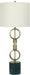 Elevate your living space with the Marble Harmony table lamp, a perfect fusion of natural elegance and modern design. The rich green marble base provides a sturdy foundation, while the golden bronze metal accents add a touch of sophistication. Topped with a beige linen drum shade, this lamp casts a warm, inviting glow ideal for living rooms or bedside tables. Its 3-way switch offers customizable lighting to suit any mood, making it both a functional and stylish addition to your home.