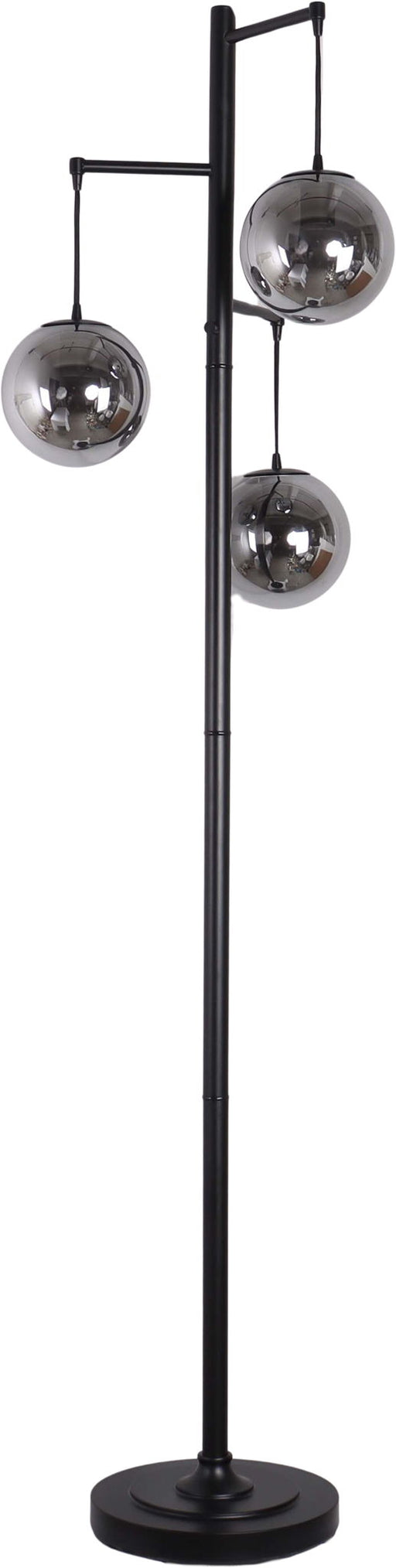 View full details"Globe Cascade" Metal Floor Lamp With Glass Globes - Polished Chrome / Smoked Glass