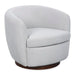 Approachable with its classic barrel design, this swivel accent chair invites stylish relaxation to the everyday. Curl up in its velvet upholstered seat—relaxing with a book or your favorite show has never been so comfortably luxurious. Completing the look, a wood swivel base provides a chic contrast to the fabric’s light neutral hue.