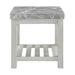 A light and airy side table companion for any room, Canova offers the elegance of a marble top in a more relaxed presentation. The substantial gray marble veneer top is centered on hearty legs and a slotted shelf for a clean, streamlined look that is weighty but not heavy. The Cathedral White finish over Ash Veneers and Poplar solids create a neutral but not demure aesthetic that is perfect for Coastal, Farmhouse, Transitional or just open and airy interiors. Use in a living area as a Side Table or in the bedroom as a Nightstand to provide the right accent for any room.