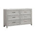 Crafted with precision, the Fiona 6 Drawer Dresser seamlessly combines the beauty of real wood with durability. Its construction features Acacia Solids, Manufactured Woods, and Oak Veneer, ensuring strength and stability. The multi-step finish, achieved through wire brushing and white glazing, enhances the natural wood grain, resulting in a light, clear mist gray finish. The dresser’s design showcases sophisticated details, including picture frame moldings, tapered legs, and sleek drawer pulls. On top, a genuine white and gray marble surface adds a rich accent that complements the wood finish. Whether your decor leans traditional or contemporary, the transitional style of the Fiona dresser effortlessly fits in. Practicality meets elegance with time-tested drawer construction. French front and English back dovetail joinery ensures strength, while full-extension glides allow smooth operation. Thoughtful extras include sanded and sealed drawers to prevent clothing snags, and a felt-lined top drawer to protect delicate items.