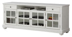 Display your television and media components in fashionable style with this 63-inch TV Console from the Cape Cod collection. Crafted in a fresh Vintage finish, its easy going character is sure to enhance the look of any room. Glass doors, generous storage, display shelves and a multi-step finish are just a few of its many fabulous features.