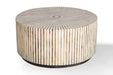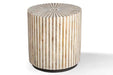 This round accent table offers a youthful, slightly Boho vibe. Organic yet refined this table is made from mango wood and bone inlay in a beautiful radial pattern.