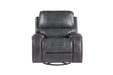 Superior comfort and style are the hallmarks of this motion set. Featuring a leather-like cover with baseball stitching, this ensemble comes with a Sofa with a drop-down console & USB charging station; a Loveseat with dual rocker/recliner ends; and a rocker/recliner Chair with 360-degree swivel. Antiqued brass nailhead trim and padded arms complete this ultimate motion package.