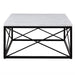 A modern occasional collection featuring a unique modern latticework iron base with stunning white marble tops. This mixed media set feels light and airy but its marble tops give extra durability for heavy duty use in the toughest environments, the family room. Bring style and beauty to your living room tables with Skyler by Steve Silver Company.
