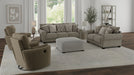 Barrett is a big, deep Traditional rolled arm design with an eclectic mix of toss pillows in a variety of colors and textures. Cuddler Cushion is standard on Sofa, Loveseat and Chair 1/2, and a companion Swivel Glider Reclining Chair is also available for additional seating.
